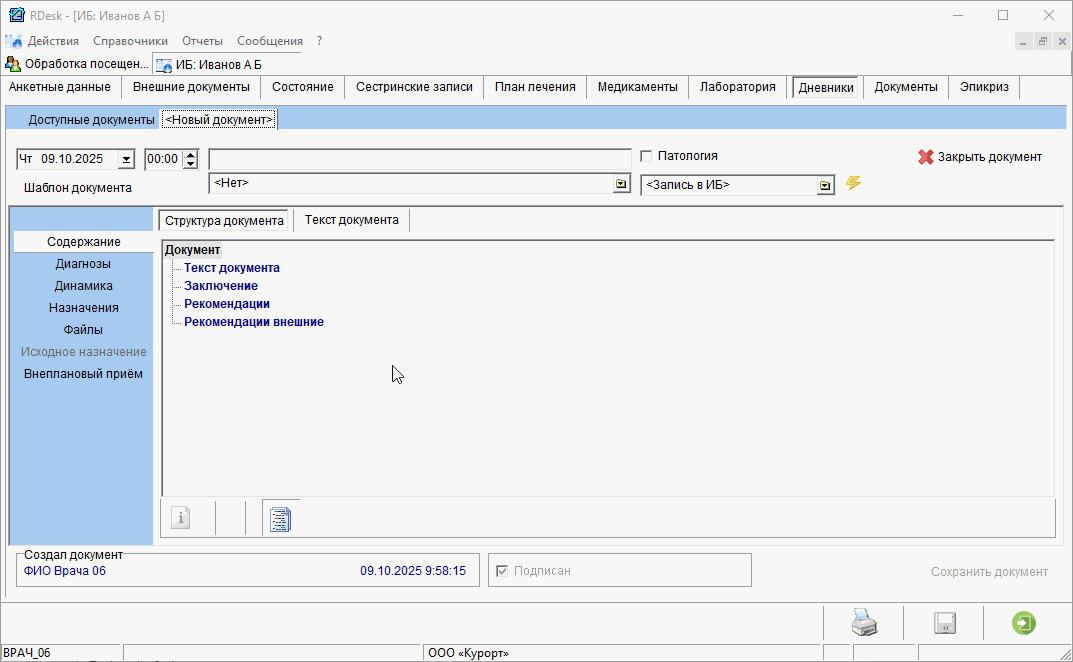 Записать диагноз с места отбора