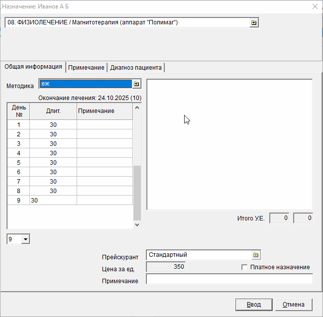 Назначение процедуры - выбор зоны воздействия в "Примечании"
