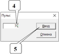 4. На клавиатуре набрать значение (пульс). При этом на экране появится окно с вводимым значением.