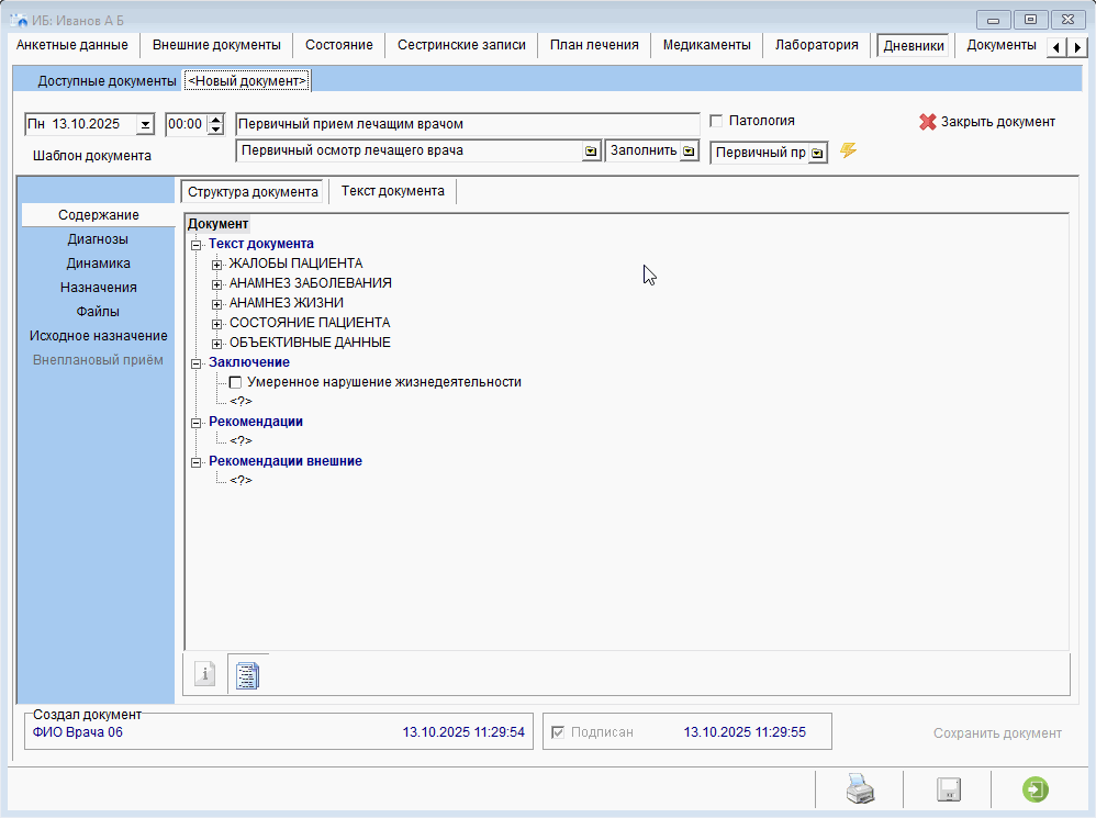 Заполнение первичного приема лечащего врача п...