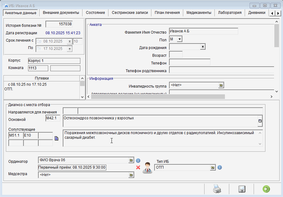 Записать диагноз с места отбора