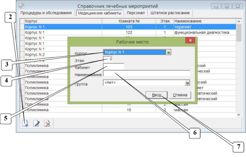 Нажать кнопку "Ввод". Примечание: изменить информацию о любом выбранном кабинете возможно с помощью кнопки "Карандаш" .
