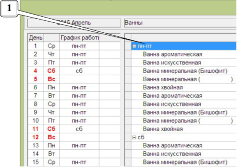 1. В таблице справа выделить наименование расписания.