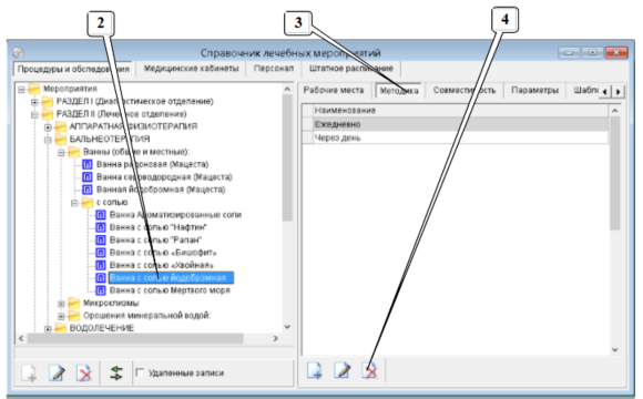 1. Отрыть справочник лечебных мероприятий.