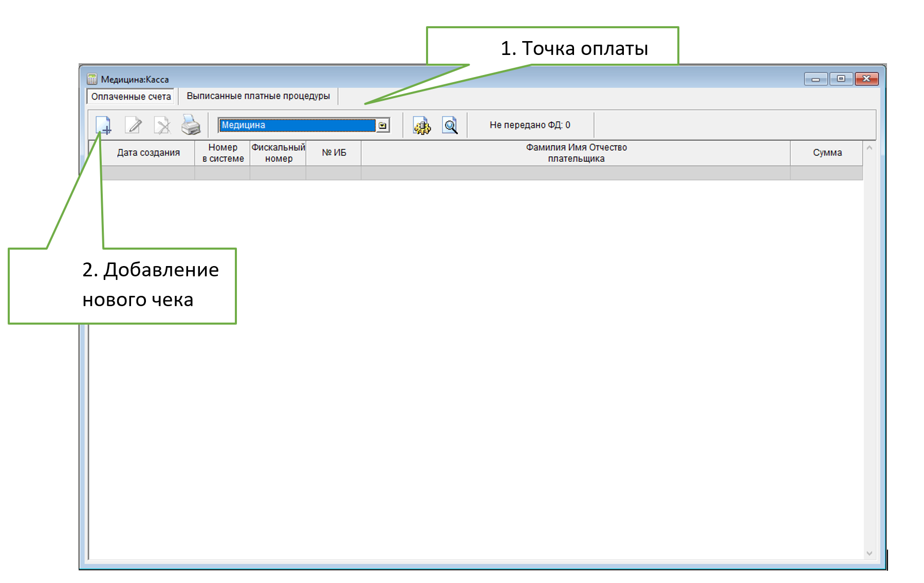 2. У верхнего края окна выбрать точку оплаты. (рисунок выше, п. 1)