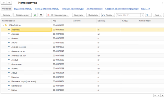По каждой номенклатуре в СПК «Здравница» отобразится внешний код (уникальный код), созданный при формировании номенклатуры в справочнике 1С: БП: