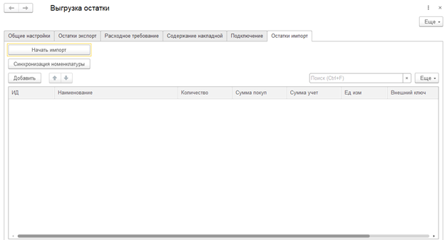 При нажатии на вкладку «Остатки импорт» откроется форма импорта остатков: